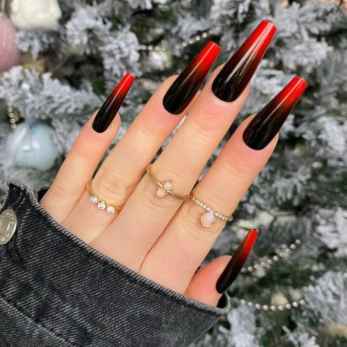 Ombre Black & Red Extra Coffin - doobysnailsltd