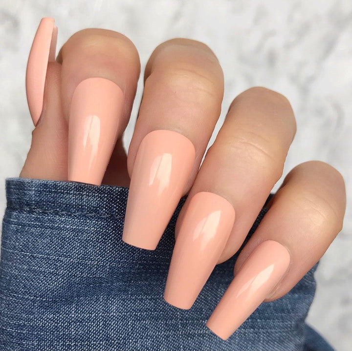 Peach Gloss Midi Coffin - doobysnailsltd